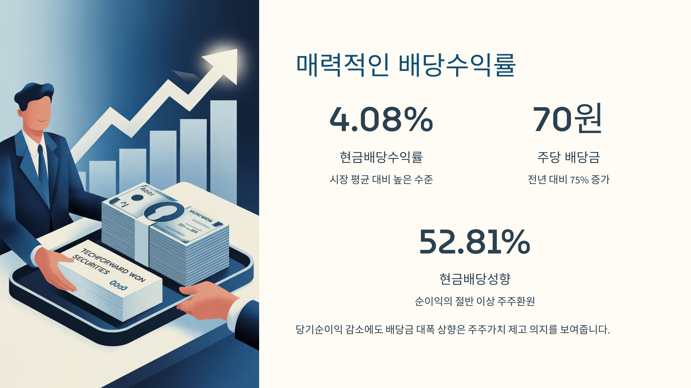 이는 현재 시장 금리나 동종 업계 평균 배당수익률과 비교해도 상당히 매력적인 수준입니다.