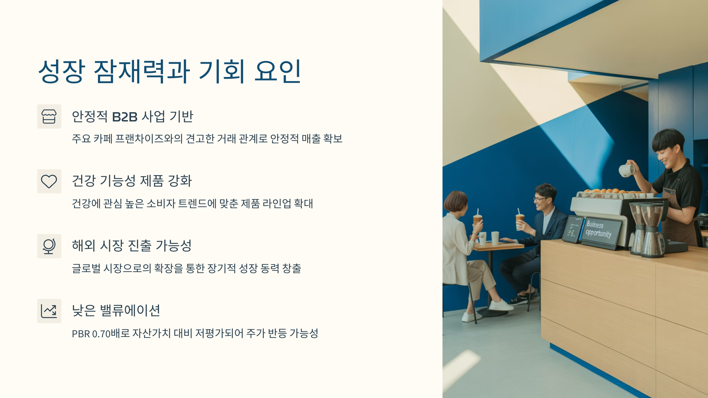 특히 카페 프랜차이즈를 중심으로 한 B2B 시장에서 강력한 입지를 구축하고 있으며,