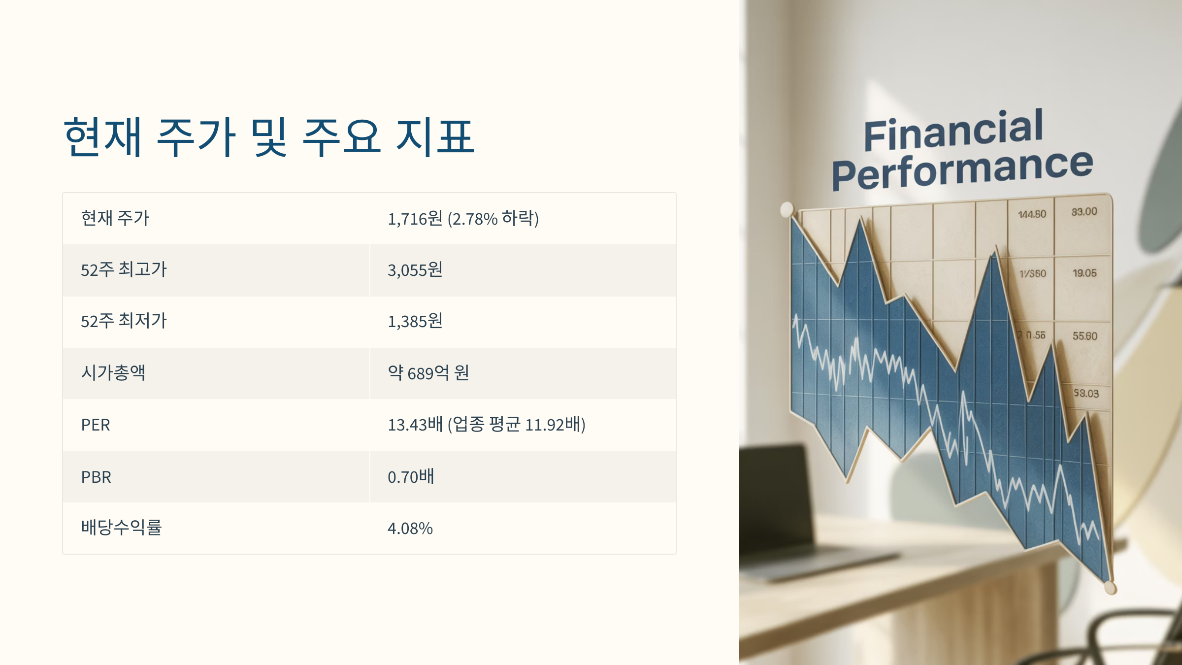 | PBR | 0.70배 | 자산 가치 대비 저평가 |